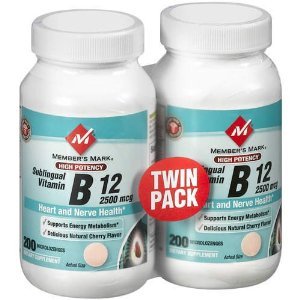 Delicious Natural Cherry Flavor..Supports Energy Metabolism..High Potency Sublingual Vitamin..Heart and Nerve Health..Twin Pack (2 Bottles of 200).. Vitamin B-12 prevents megaloblastic anemia by helping to from red blood cells. Vitamin B-12 helps to maintain normal levels of homocysteine which is important for heart and circulatory health. Play an important role in the nervous system and proper function of all body, brain and nerve cells.Member's Mark - Vitamin B-12 2500 mcg, High Potency, Sublingual B12, 400 Microlozenges Product Reviews Of Sam's West, Inc. = and then check the lowest price immediately. In a very minimal occasion merely!